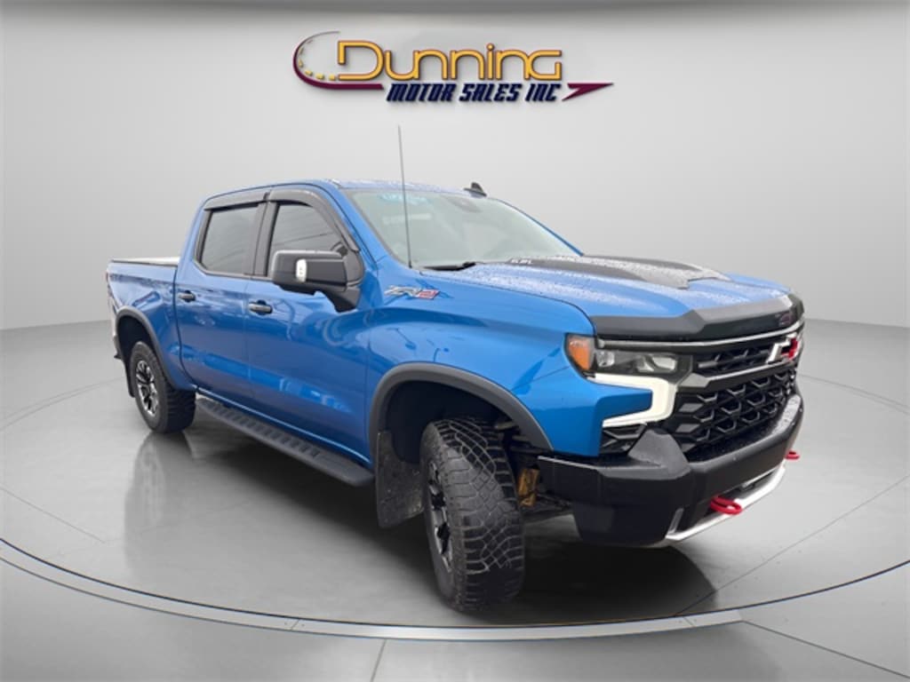 Recent Arrival! 2023 Chevrolet Silverado 1500 ZR2 4WD 10-Speed Automatic EcoTec3 6.2L V8 Glacier Blue Metallic 10-Way Power Driver Seat w/Lumbar, 10-Way Power Passenger Seat Adjuster w/Lumbar, 12.3" Multicolor Reconfigurable Digital Display, 120-Volt Bed Mounted Power Outlet, 120-Volt Instrument Panel Power Outlet, 170 Amp Alternator, 2 USB Data Ports, 2nd Row Heated Outboard Seats, 3.23 Rear Axle Ratio, 4-Wheel Disc Brakes, 7 Speakers, ABS brakes, Air Conditioning, Alloy wheels, All-Weather Floor Liner (LPO), AM/FM radio: SiriusXM with 360L, Apple CarPlay/Android Auto, Auto High-beam Headlights, Auto-dimming door mirrors, Auto-Dimming Inside Rear-View Mirror, Auto-dimming Rear-View mirror, Auto-Locking Rear Differential, Automatic Emergency Braking, Automatic temperature control, Bed View Camera, Bluetooth® For Phone, Brake assist, Chevrolet Connected Access Capable, Chevytec Spray-On Black Bedliner, Color-Keyed Carpeting Floor Covering, Compass, Deep-Tinted Glass, Delay-off headlights, Driver door bin, Driver Memory, Driver vanity mirror, Dual Exhaust, Dual front impact airbags, Dual front side impact airbags, Dual Rear USB Ports (Charge Only), Electric Rear-Window Defogger, Electrical Steering Column Lock, Electronic Cruise Control, Electronic Stability Control, Electronic Transmission Range Selector Shifter, EZ Lift Power Lock & Release Tailgate, Floor Mounted Center Console, Following Distance Indicator, Forward Collision Alert, Front anti-roll bar, Front Bucket Seats, Front Center Armrest, Front dual zone A/C, Front fog lights, Front LED Fog Lamps, Front Pedestrian Braking, Front Rainsensing Wipers, Front reading lights, Front wheel independent suspension, Fully automatic headlights, Garage door transmitter, HD Surround Vision, Heated door mirrors, Heated Driver & Front Outboard Passenger Seats, Heated front seats, Heated rear seats, Heated Steering Wheel, Heated steering wheel, Heavy-Duty Air Filter, High Gloss Black Mirror Caps, Hill Descent Control, Hitch Guidance, Hitch Guidance w/Hitch View, Illuminated entry, Integrated Trailer Brake Controller, IntelliBeam Automatic High Beam On/Off, Keyless Open & Start, Lane Keep Assist w/Lane Departure Warning, LED Cargo Area Lighting, Low tire pressure warning, Manual Tilt/Telescoping Steering Column, Memory seat, Occupant sensing airbag, OnStar & Chevrolet Connected Services Capable, Outside Heated Power-Adjustable Mirrors, Outside temperature display, Overhead airbag, Overhead console, Panic alarm, Passenger door bin, Passenger vanity mirror, Perforated Leather Seat Trim, Performance Red Recovery Hooks, Perimeter Lighting, Power door mirrors, Power driver seat, Power Front Passenger Windows w/Express Up/Down, Power Front Windows w/Driver Express Up/Down, Power passenger seat, Power Rear Windows w/Express Down, Power Sliding Rear Window w/Rear Defogger, Power steering, Power windows, Preferred Equipment Group 3LT, Premium audio system: Chevrolet Infotainment 3 Premium, Premium Bose 7-Speaker Sound System, Radio data system, Radio: Chevrolet Infotainment 3 Premium System, Rain sensing wipers, Rear Cross Traffic Alert-Braking, Rear Park Assist, Rear Parking Sensors, Rear Pedestrian Alert, Rear reading lights, Rear seat center armrest, Rear step bumper, Rear Wheelhouse Liners, Rear window defroster, Remote keyless entry, Remote Vehicle Starter System, Safety Alert Seat, Security system, SiriusXM w/360L, Speed control, Speed-sensing steering, Split folding rear seat, Standard Tailgate, Steering Wheel Audio Controls, Steering wheel mounted audio controls, Tachometer, Telescoping steering wheel, Theft Deterrent System (Unauthorized Entry), Tilt steering wheel, Traction control, Trailer Camera Provisions, Trailer Side Blind Zone Alert, Trailering App, Trailering Package, Trip computer, Universal Home Remote, Up-Level Rear Seat w/Storage Package, Variably intermittent wipers, Ventilated Driver & Front Passenger Seats, Ventilated front seats, Voltmeter, Wheels: 18" x 8.5" Aluminum Ma